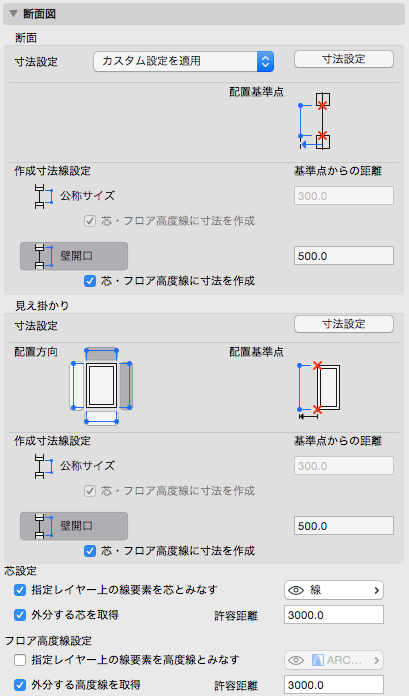※境界の判定について:基本的には、複合構造の躯体タイプを中心とします。躯体タイプが設定されていない複合構造についてはその他タイプを中心とします。仕上げ層、その他層、躯体層のチェックボックス:表示/非表示を制御します。