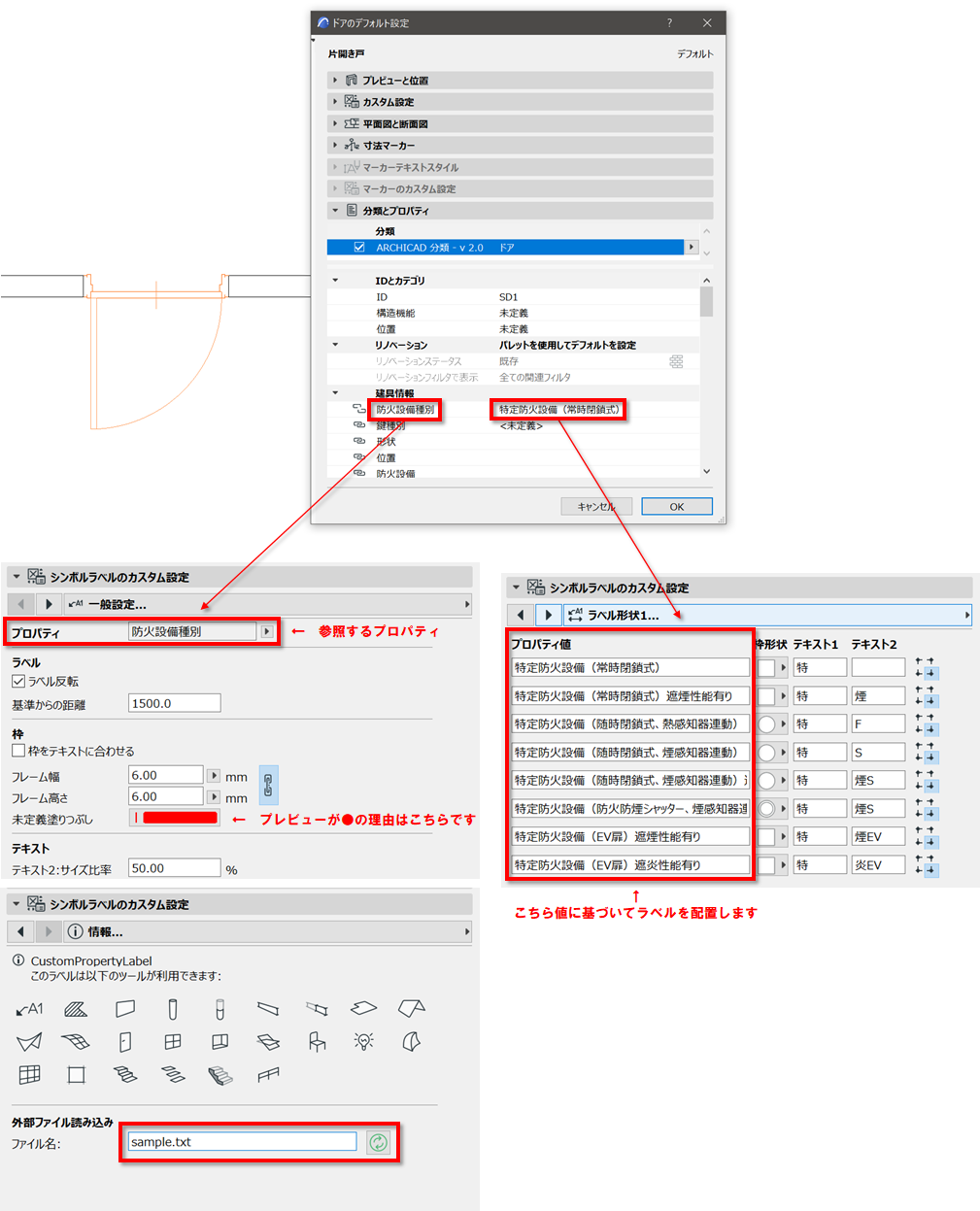 4.シンボルラベルのカスタム設定 > ラベル形状1… に、入力されているのが確認できます。 ※一般設定 で、対応する参照したいプロパティの選択を忘れずにしましょう。