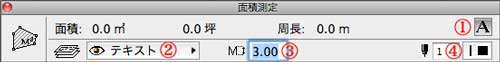 | 1 | 面積テキスト | ONにすると面積を測定した後、面積値をテキストツールで配置できます |