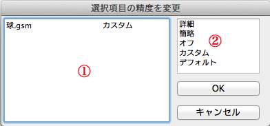 | 1 | 要素 | 消去処理をする要素を指定しますデフォルトでは、線、円弧、壁、柱が指定されています |